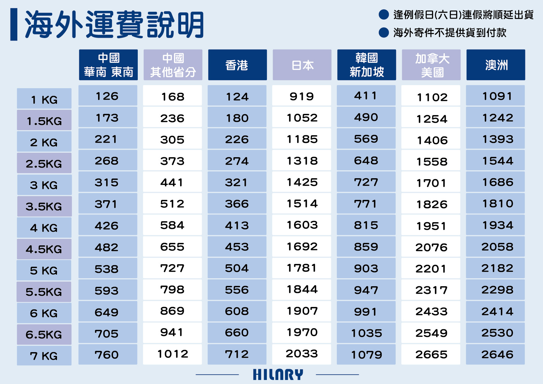 ●國家/地區宅配運費會依商品總重量公斤(kg)計算,訂購商品前請先參考運送地區對應重量級距,相關計算方式請參考運費表。
