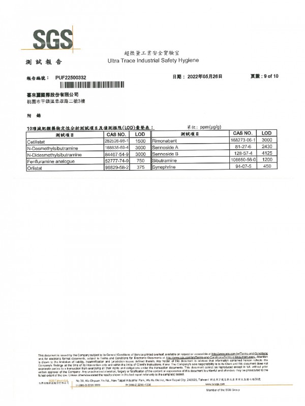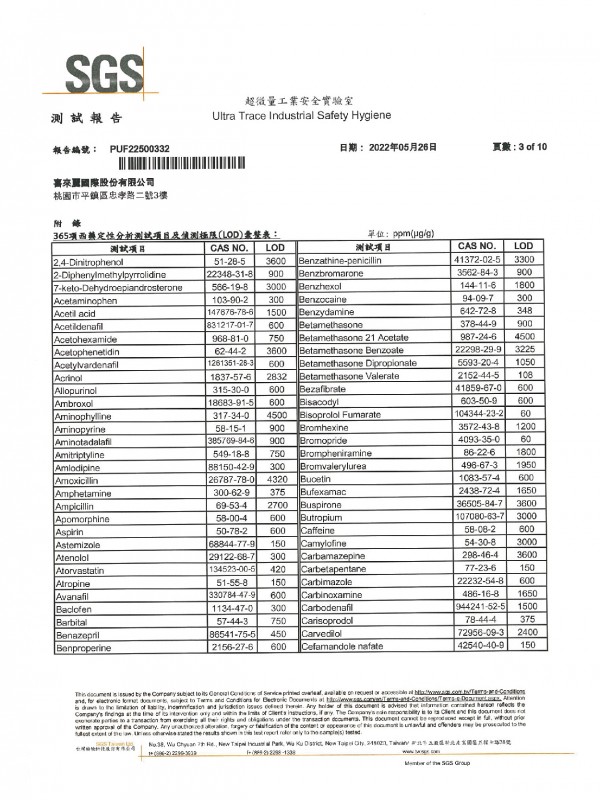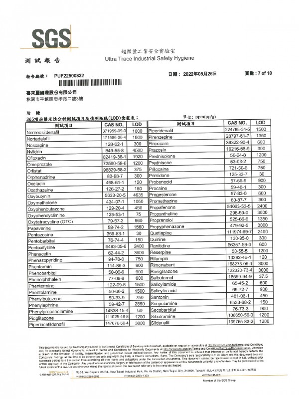PUF22500332 360項西藥+10項減肥藥 檢驗結果不含360項西藥+10項減肥藥
