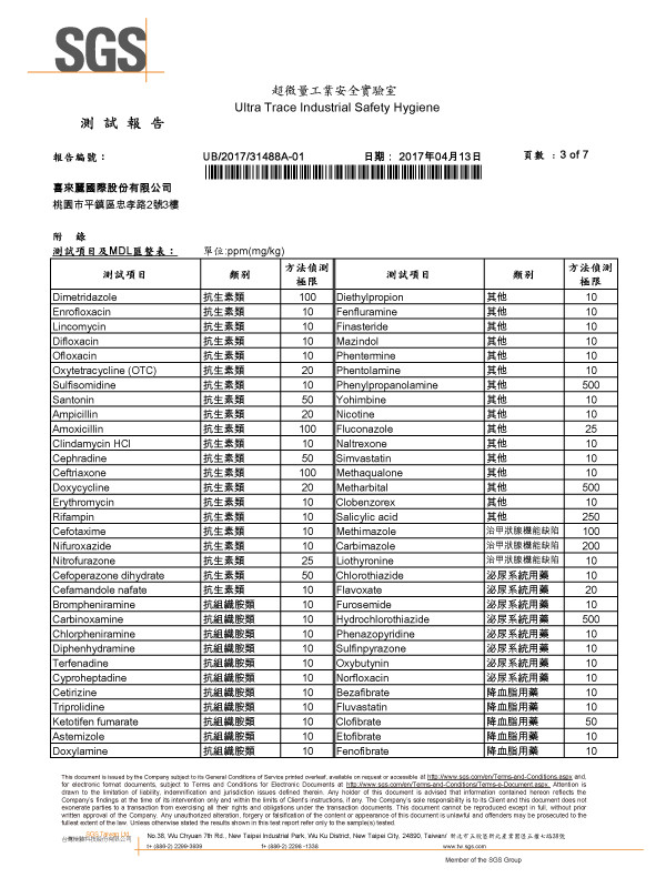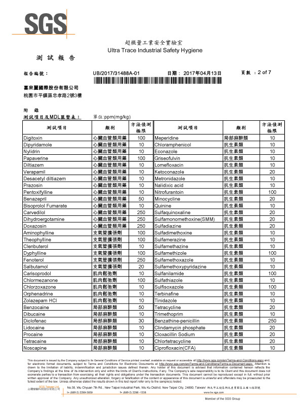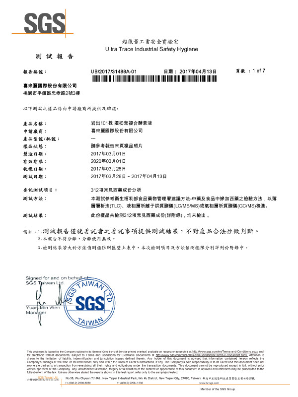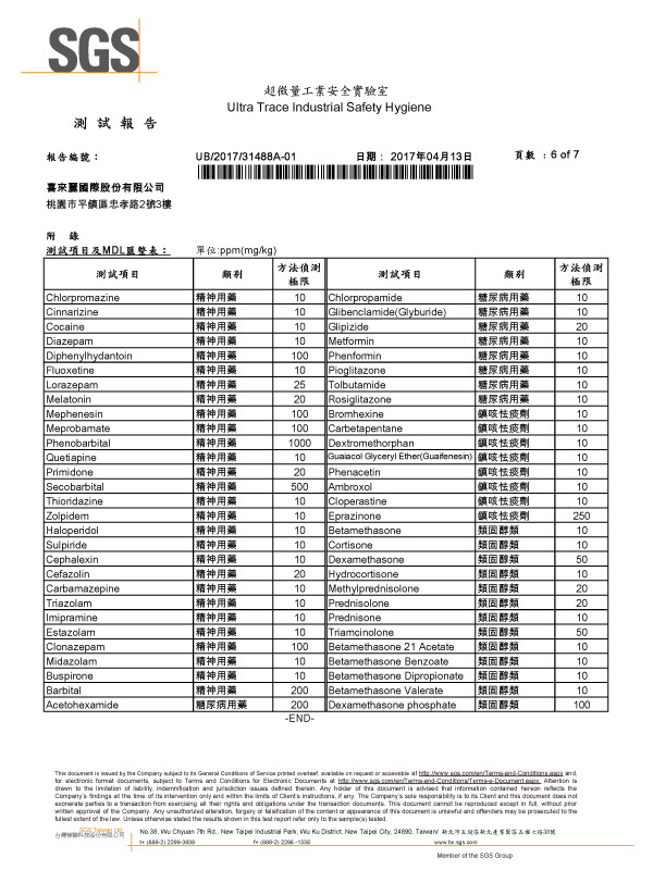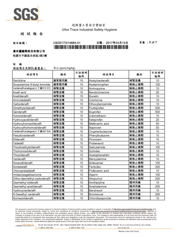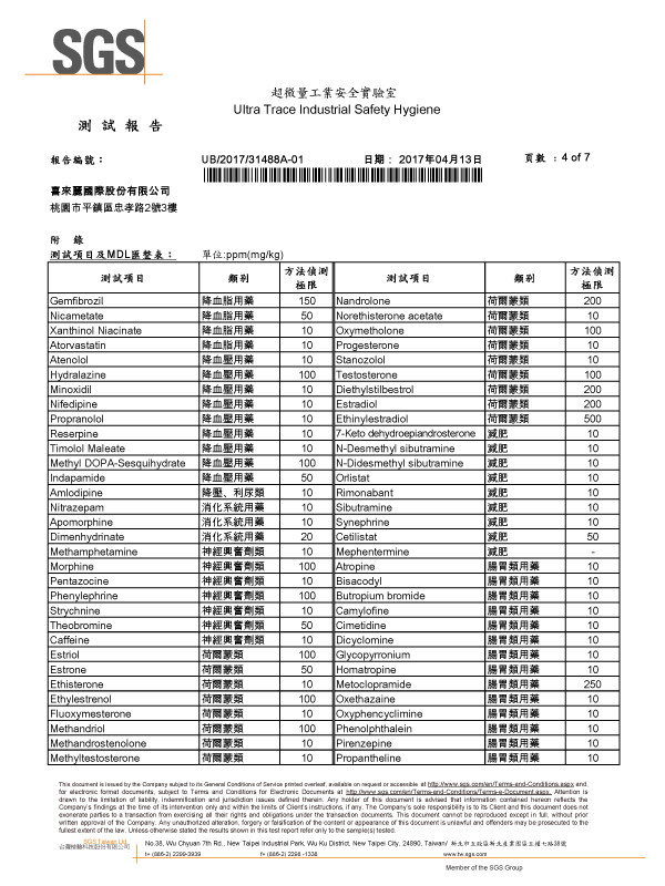UB/2017/31488A-01 312項常見西藥成分分析 檢驗結果不含312項常見西藥成分分析