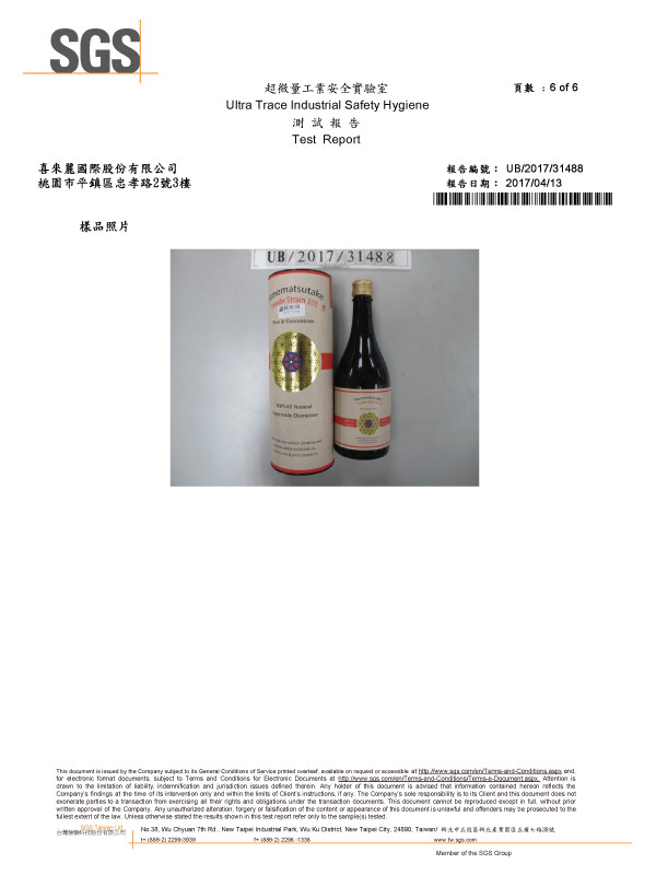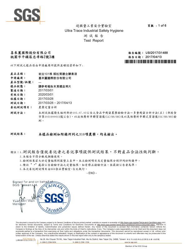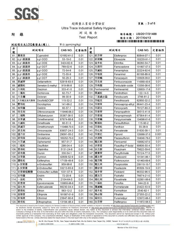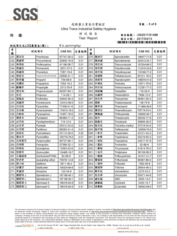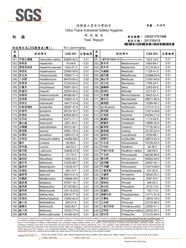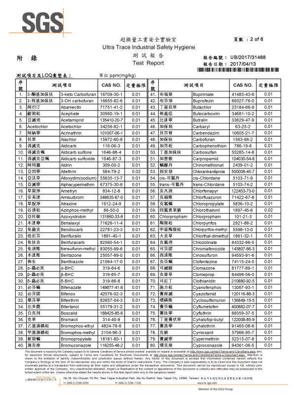 UB/2017/31488 310項農藥定量分析 檢驗結果不含310農藥定量分析