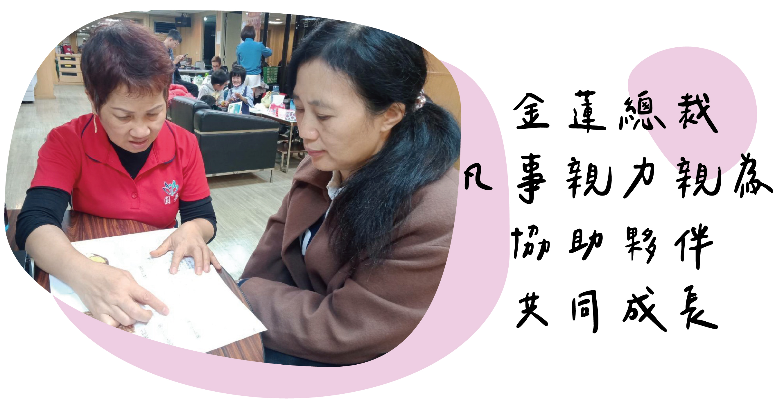 金蓮總裁從小在務農的家庭長大,童年記憶不是看牛就是趕鴨,單純的她因為上有3個姐姐與3個哥哥在家中備受照顧,此時的她一直認為面對他人的「付出」是理所當然的,自己總是默默地接受著別人的「給予」。