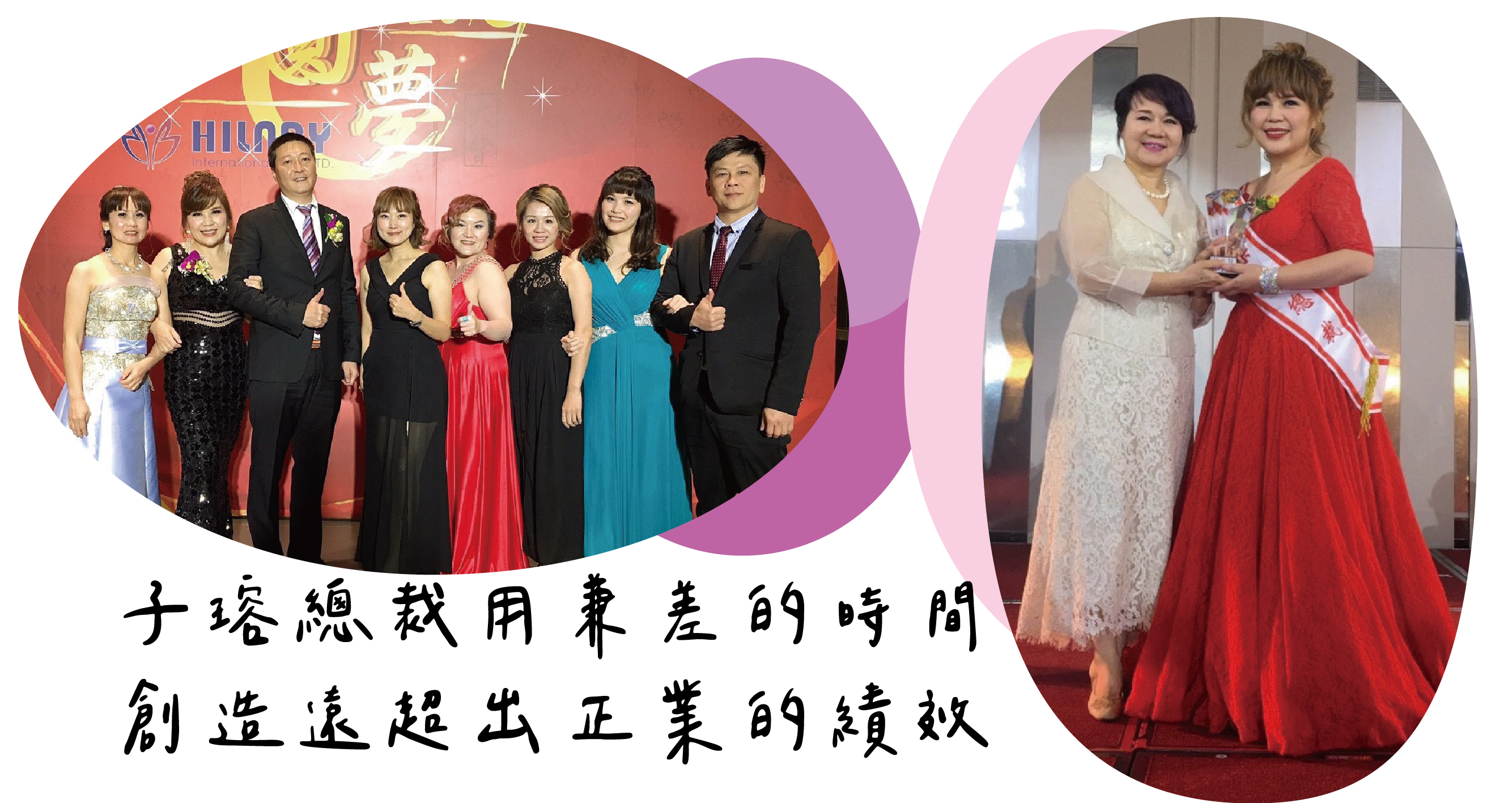 在嘗試產品後,意外地得到非常顯著的效果,令子瑢總裁大為震驚,且因為時間安排自由,在不影響正業的情況下,子瑢總裁進課程學習,了解制度認識產品,由於她自己就是產品的最活生生的範例,許多好朋友、同業和美容的客人也前來詢問關注,「0」元創業事業優勢「無效退費」的產品機制造就超高成交率,子瑢總裁開始兼差喜來麗事業,然而在喜來麗兼差的單月收入高達35萬,居然遠遠超過全心耕耘38年以引為傲、技術本位最愛的美容行業,可以累積與倍增的收入讓她擁有真正的安全感,她告訴自己,現在付出別人無法付出的,將來就能得到別人無法享受地,正式開啟了她的斜槓組織經營。