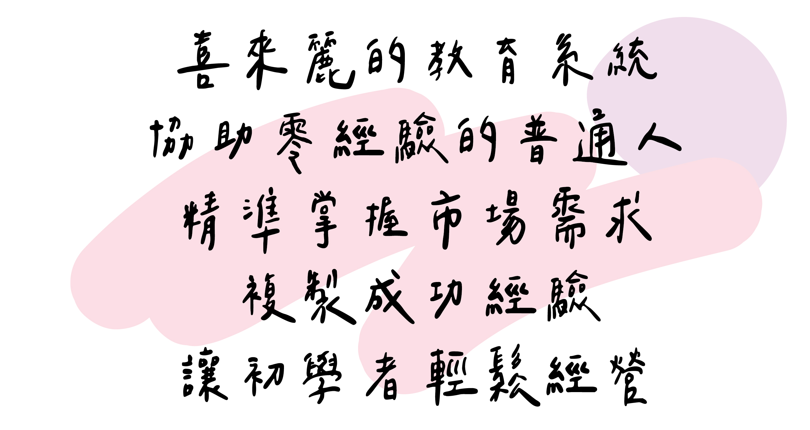 從兼職到全職,進入喜來麗後看見前輩的月收入從20、50、100萬以上逐漸成長,這是過去在傳統產業裡從來沒有的狀況,在喜來麗事業經營可以累積,所有資源可以合作代替競爭0元創業自己當老闆沒有風險,不會有人脈負債、囤貨的壓力、開店的基本開銷(房租、員工薪資、水電費、材料費等),讓嘉儀總裁更堅信這份事業是適合自己並且可以經營的。