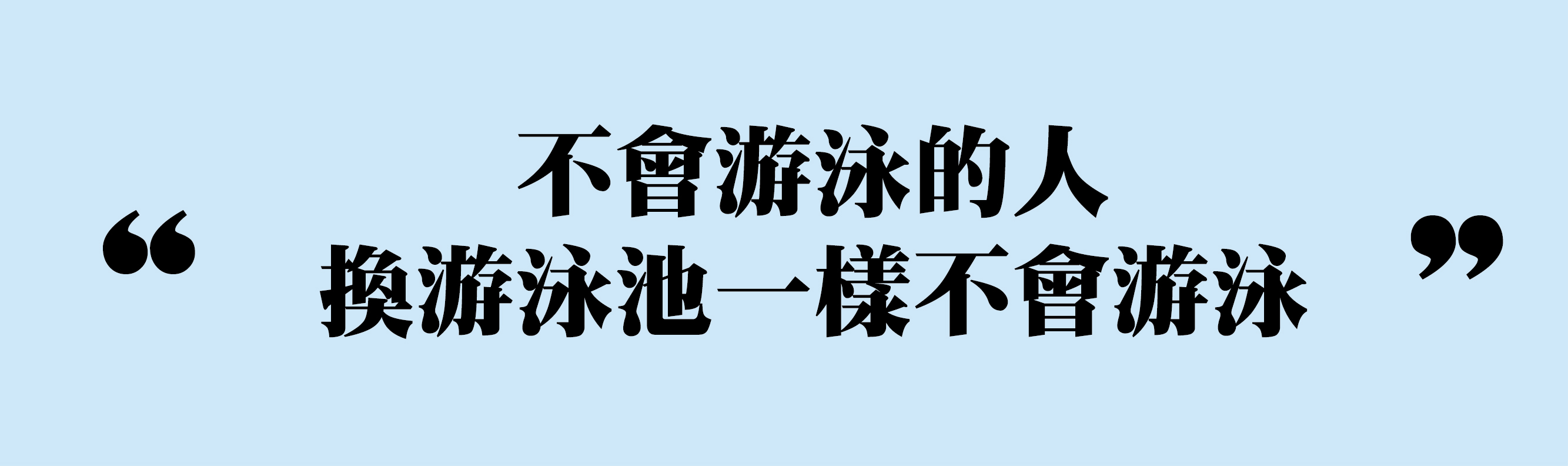 「不會游泳就要去學游泳,因為游泳池是沒有問題的,可能是速度可能是方法有問題,大家就一起磨合一起去摸索。」